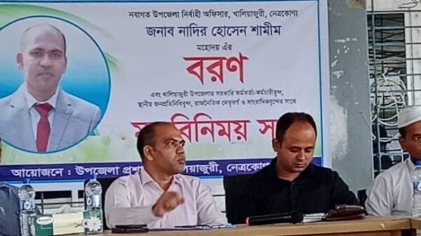 খালিয়াজুরী নবাগত ইউএনও শামীমের বরণ অনুষ্ঠান অনুষ্ঠিত